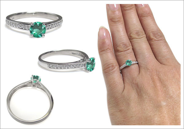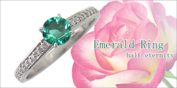 5月誕生石大粒エメラルドを一粒使用した、10金製のハーフエタニティリング(指輪)です。