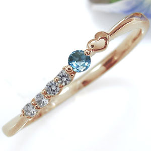 ブルートパーズ・リング・ハート・指輪・10金・華奢・ピンキーリング