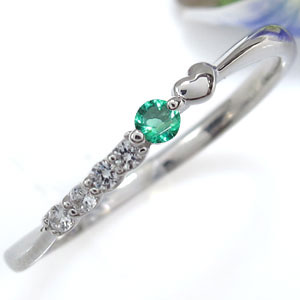 5月誕生石エメラルドを使用した、プラチナ製のハートモチーフリング(指輪)です。