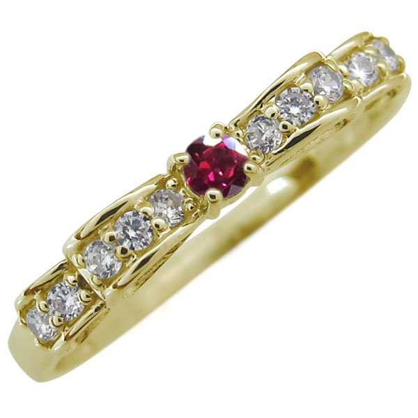 華やかさと上品さ、優しさを兼ね備えた プリンセス ジュエリー![]() 7月誕生石ルビーを使用した、10金製のリボンモチーフリング(指輪)です。 サイズ1号からお選びいただけますので、ピンキーリングにもお勧めです。
