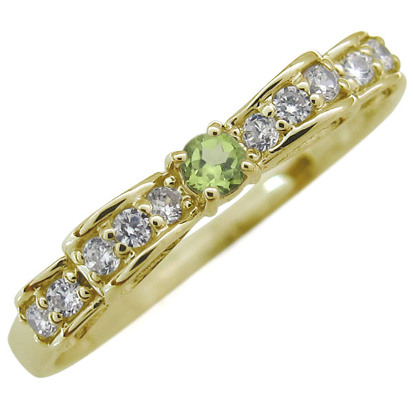 華やかさと上品さ、優しさを兼ね備えた プリンセス ジュエリー![]() 8月誕生石ペリドットを使用した、10金製のリボンモチーフリング(指輪)です。 サイズ1号からお選びいただけますので、ピンキーリングにもお勧めです。