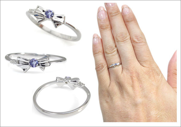 12月誕生石タンザナイトを一粒使用した、プラチナ製のリボンモチーフリング(指輪)です。ピンキーリングにもオススメの指輪です。