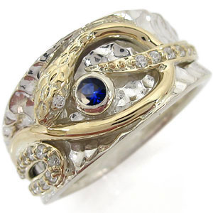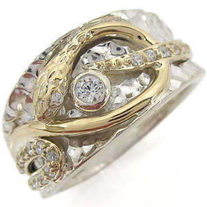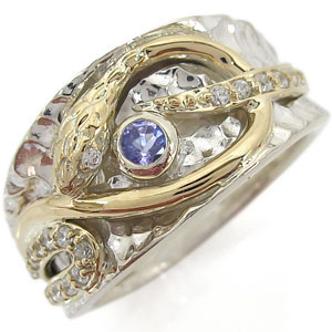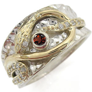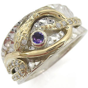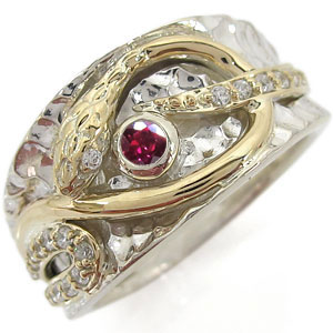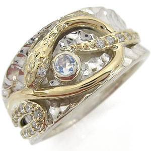 誕生石12石を一粒使用した、シルバー&K10イエローゴールド製のスネーク(蛇)モチーフメンズリングです。
