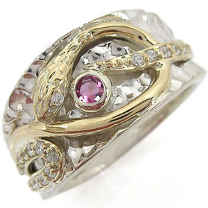 選べる誕生石 メンズ スネークリング 指輪 10金 ヘビ