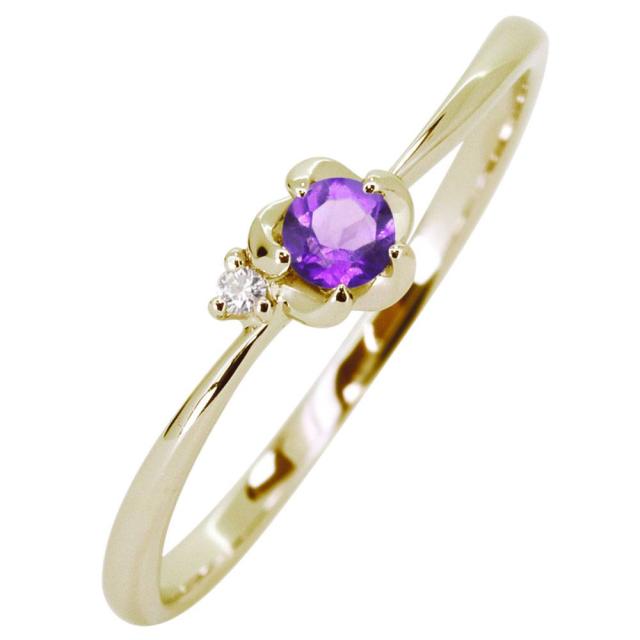 指輪 18金 アメジスト リング 花 ピンキーリング フラワー 誕生石 2月