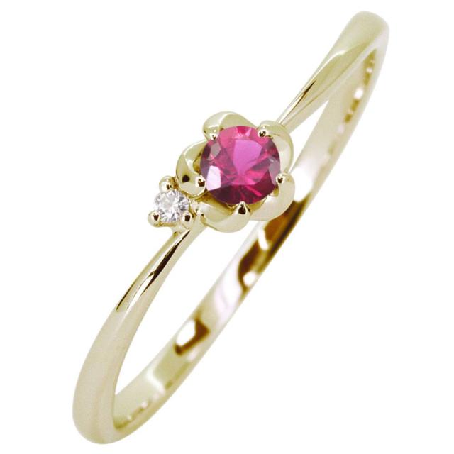 指輪 18金 ルビー リング 花 ピンキーリング フラワー 誕生石 7月