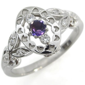 2月誕生石アメジストを使用した10金製の、アンティークデザインリング(指輪)です。 繊細で優美なシルエットから浮き出る陰影が指先を上品でエレガントに演出してくれます。