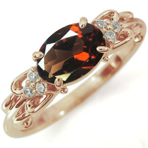 | ■石名 | 主石 ガーネット(オーバル 約 5.0mm×7.0mm/天然石使用) 脇石 ダイヤモンド(6石合計で約 0.06ct/天然石使用) |