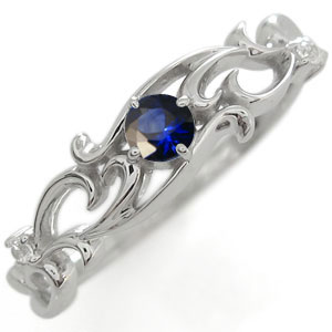 サファイアリング 唐草 一粒 サファイア 指輪 K18
