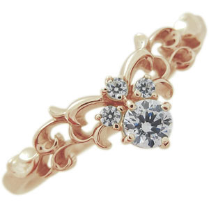 4月誕生石ダイヤモンドを一粒使用した10金製のティアラ&唐草モチーフリング(指輪)です。