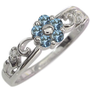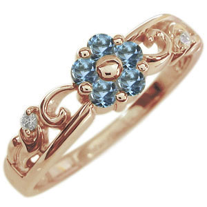 アクアマリンサンタマリア リング フラワー 花 K18 指輪