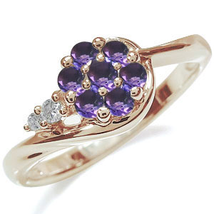 | 2月誕生石アメジストを使用した18金製フラワー(花)モチーフリング(指輪)です。 天然石の花びらが美しくゴージャスに女性の指元を魅力的に飾ります。 【 誕生石12石から選択頂けます 】 | |||||||||||||||