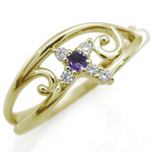 | 2月誕生石アメジストを使用した10金製のクロス&アラベスク(唐草)モチーフのリング(指輪)です。 クロスの中央に誕生石をあしらったデザインが、 女性らしさと存在感漂う魅力的な指先を演出してくれます。 | |||||||||||||||