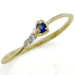 9月誕生石サファイアを一粒使用した、10金製のハートモチーフリング(指輪)です。