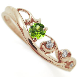 | 8月誕生石ペリドットを使用した10金製の唐草(アラベスク)デザインリング(指輪)です。 しなやかで繊細な唐草模様が、美しく優しい女性をイメージさせるリングです。 | ||||||||||||||