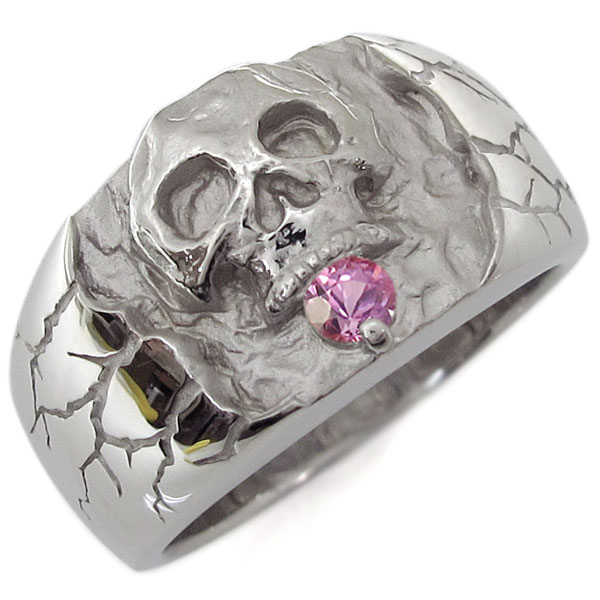 スカル ドクロ リング ピンクサファイア 骸骨 指輪 メンズ リング