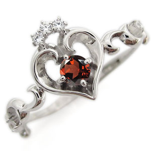 | 1月誕生石ガーネットを一粒使用した、18金製のハートモチーフリング(指輪)です。 しなやかで繊細な唐草模様が、美しく優しい女性をイメージさせるリングです。 天然石を包み込んだハートが、女性の指を可愛らしく魅力的に飾ります。 | ||||||||||||||