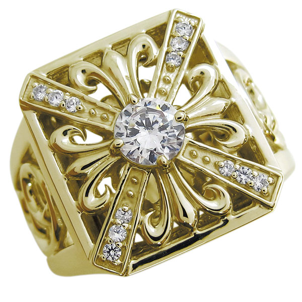![]() 4月誕生石ダイヤモンドを一粒使用した、10金製クロス&百合の紋章モチーフメンズリング(指輪)です。 クロスと百合の紋章の組み合わせがクールなメンズリング。 サイドの唐草(アラベスク)模様の透かしが、貴方の手元をゴージャスに演出します。