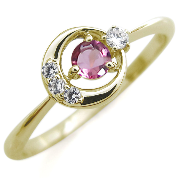 月モチーフ リング ピンクトルマリン K18 指輪 ピンクトルマリンリング
