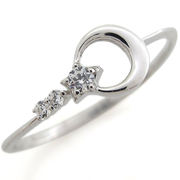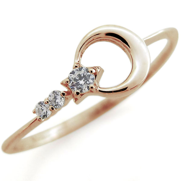 星 月 モチーフ 誕生石 リング ピンキーリング ムーン 指輪 K10 一粒