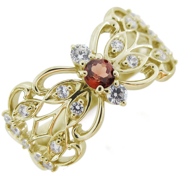 唐草 リング ガーネット リング バタフライ アンティーク調 指輪