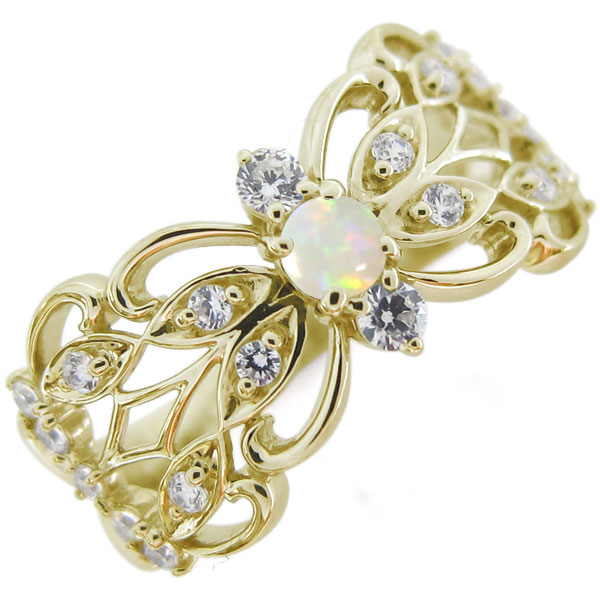 オパール 指輪 バタフライ リング 蝶 10金 アラベスク リング