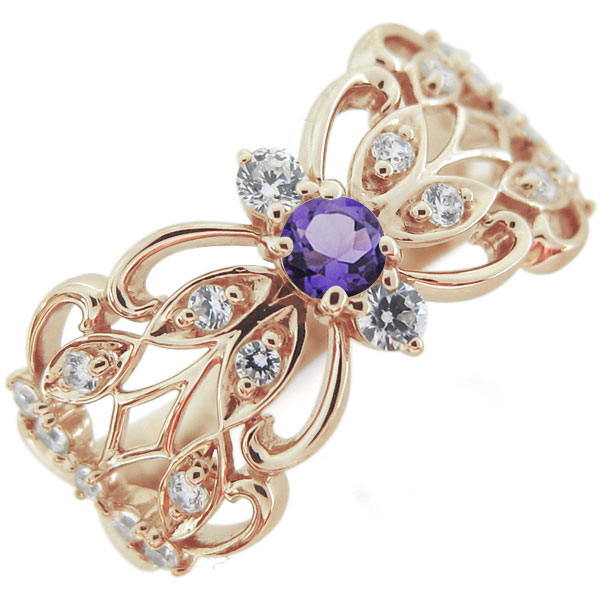 唐草 リング アメジスト リング バタフライ アンティーク調 指輪
