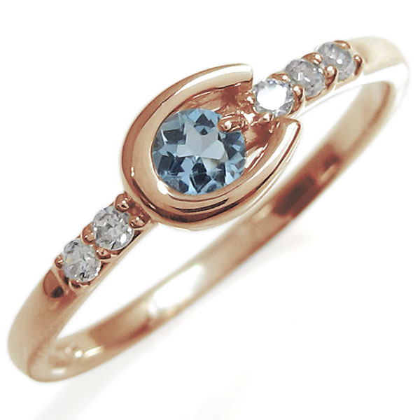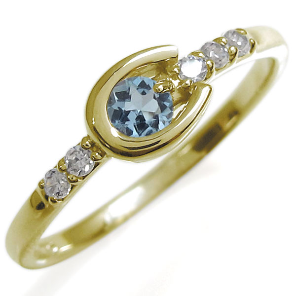 馬蹄 リング アクアマリンサンタマリア 指輪 18金 ホースシューリング