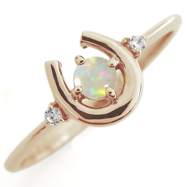 馬蹄 指輪 オパール リング ホースシュー リング 10金