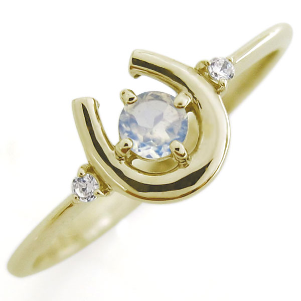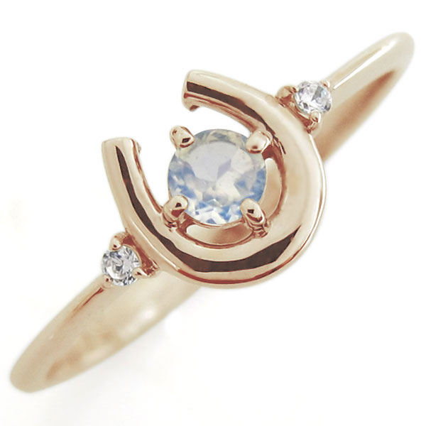 馬蹄 指輪 ロイヤルブルームーンストーン リング ホースシュー リング 10金