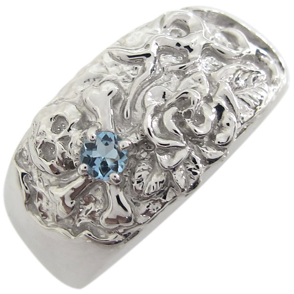 ![]() 3月誕生石アクアマリンサンタマリアを一粒使用した18金製の、 スカル(骸骨)&バラをモチーフしたメンズリング(指輪)です。 ドクロとバラをモチーフにした今までにない雰囲気のスカルリングです。 美しいディテールのリングが彼方の指元を、さりげなくハードに演出してくれます。