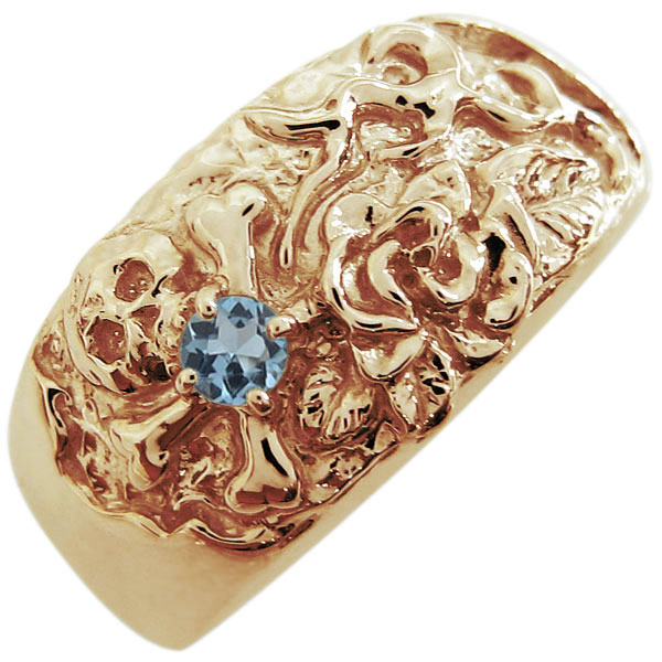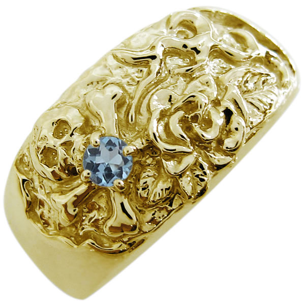アクアマリンサンタマリア スカル バラ リング 骸骨 メンズリング 指輪 18金