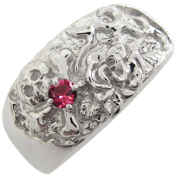 プラチナ ルビー 薔薇 ドクロリング 骸骨 リング 指輪