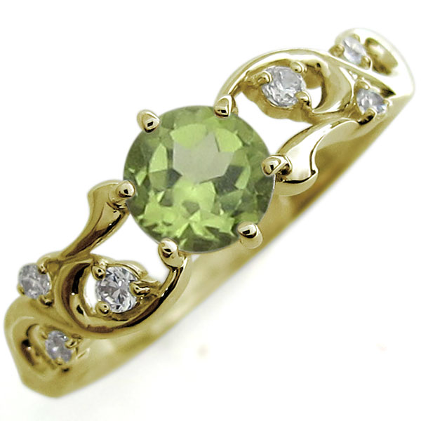 ペリドット リング 唐草 指輪 10金 大粒 リング