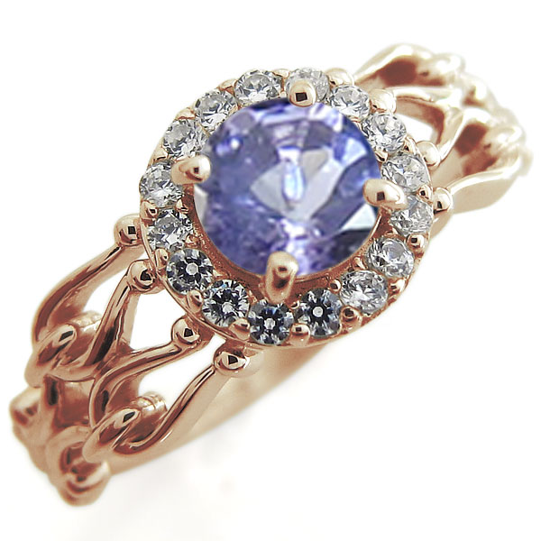12月誕生石タンザナイトを一粒使用した、18金製の取り巻きデザインリング(指輪)です。