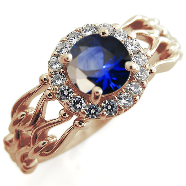 9月誕生石サファイアを一粒使用した、10金製の取り巻きデザインリング(指輪)です。