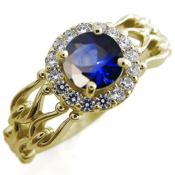 9月誕生石サファイアを一粒使用した、18金製の取り巻きデザインリング(指輪)です。
