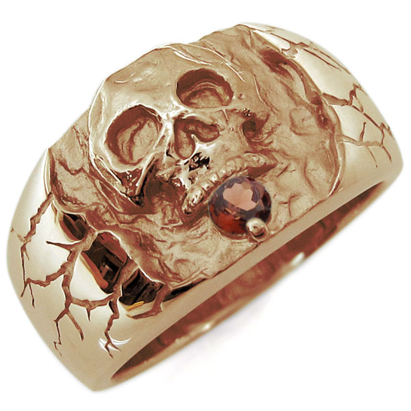1月誕生石ガーネットを一粒使用した、18金製のスカル(骸骨)をモチーフしたメンズリング(指輪)です。