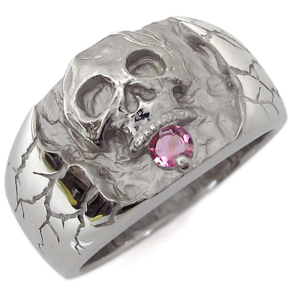 スカル ドクロ リング ピンクトルマリン 骸骨 指輪 メンズ リング
