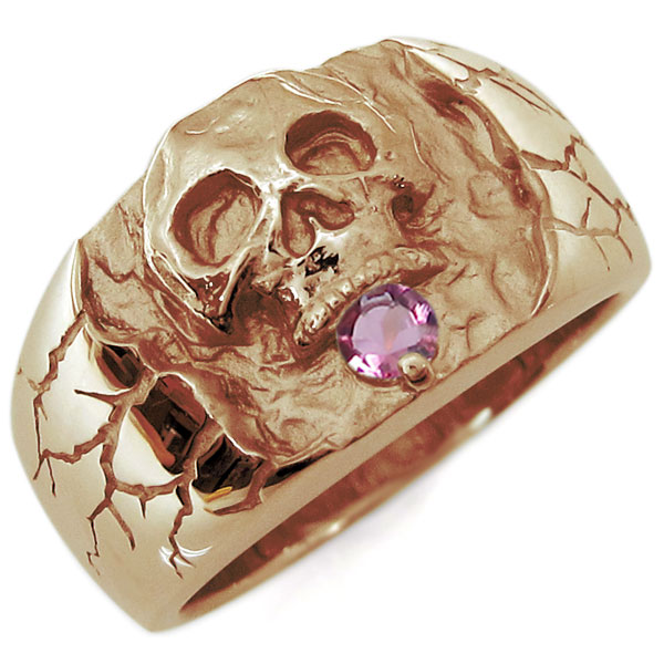 10月誕生石ピンクトルマリンを一粒使用した、18金製のスカル(骸骨)をモチーフしたメンズリング(指輪)です。