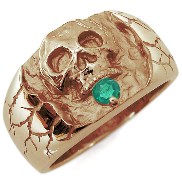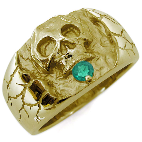 5月誕生石エメラルドを一粒使用した、18金製のスカル(骸骨)をモチーフしたメンズリング(指輪)です。
