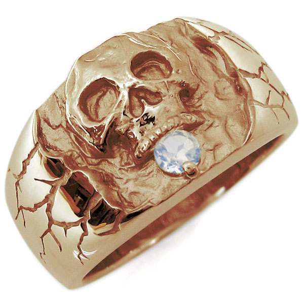 ![]() 6月誕生石ロイヤルブルームーンストーンを一粒使用した18金製の、 スカル(骸骨)をモチーフしたメンズリング(指輪)です。 ドクロ(髑髏)をモチーフにした、重厚感たっぷりのスカルリングです。 細かいディティールに至るまで精巧に作られたリングが、さりげなくハードに演出してくれます。