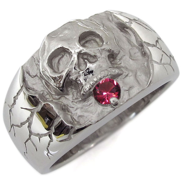 7月誕生石ルビーを一粒使用した、プラチナ製のスカル(骸骨)をモチーフしたメンズリング(指輪)です。