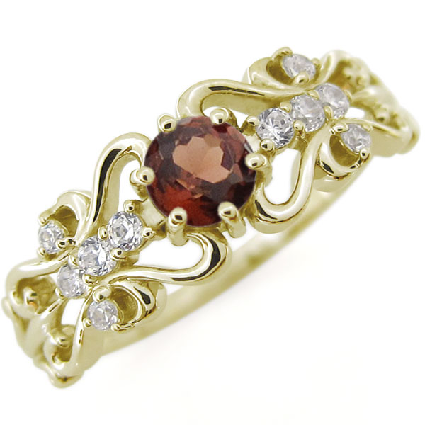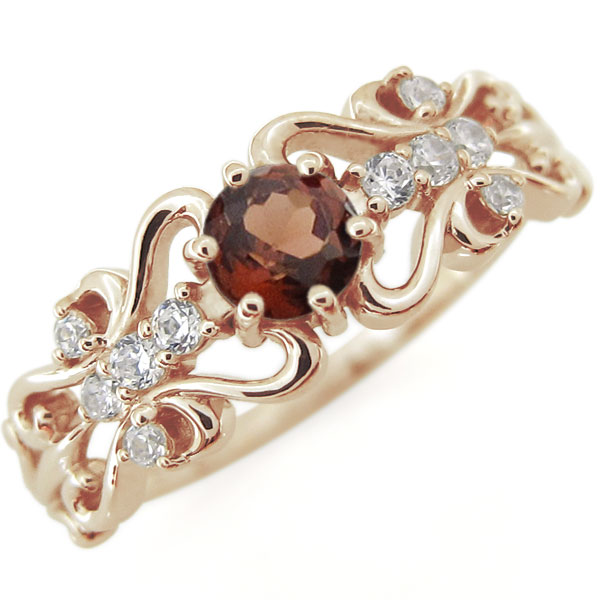 ガーネット・アラベスクリング・唐草・指輪・ハートリング・百合・K10