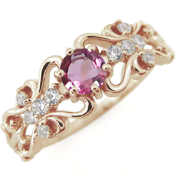 ピンクトルマリン リング アンティーク 唐草 リング ハート 指輪 18金