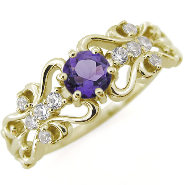 アメジスト・アラベスクリング・唐草・指輪・ハートリング・百合・K10