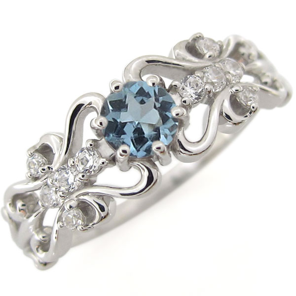 アクアマリン リング アンティーク 唐草 リング ハート 指輪 18金