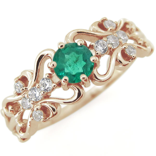 エメラルド・アラベスクリング・唐草・指輪・ハートリング・百合・K10