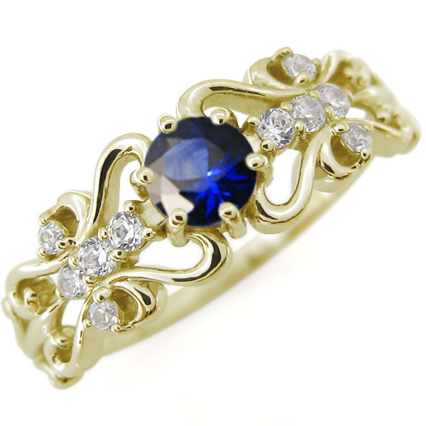 サファイア・アラベスクリング・唐草・指輪・ハートリング・百合・K10