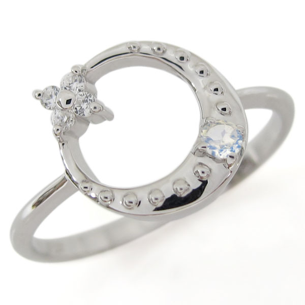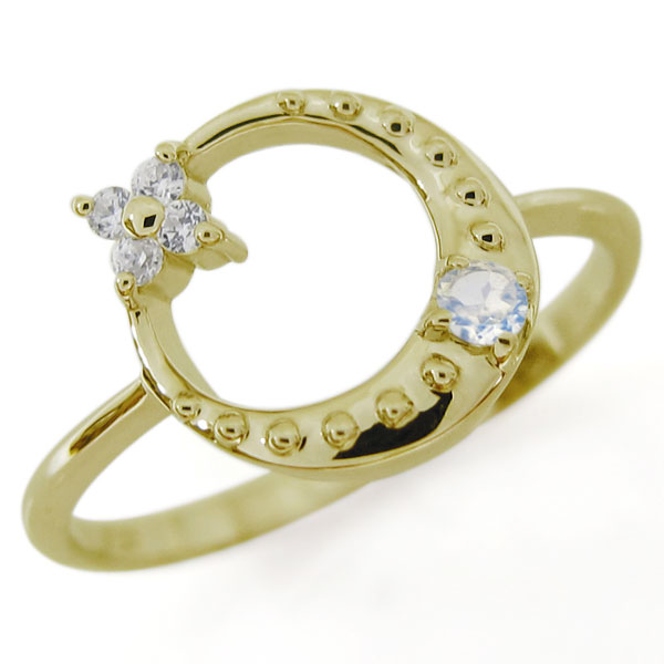 ![]() 6月誕生石ロイヤルブルームーンストーンを使用した、 18金製の三日月(ムーン)星(スター)モチーフリング(指輪)です。 煌めく天然石の星が、艶やかに光る月に寄り添った可愛らしいリングです。